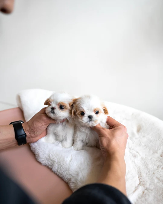 BREED: MALTIPOO NAME: COCO & CHANEL SEX: MALE COLOR: CREAM PARTI AGE: 3MONTHS