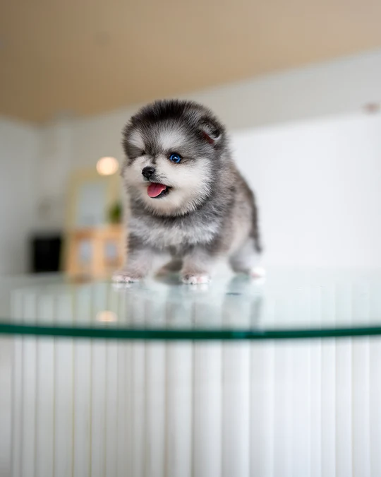 BREED: POMSKY NAME: BENNY SEX: MALE COLOR: SILVER & WHITE AGE: 3MONTHS